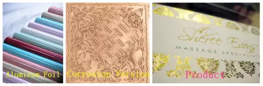 A uma certa temperatura e pressão, a transferência de folha de alumínio para a superfície do produto, diferentes padrões e palavras com diferentes versão de corrosão de zinco ou cobre.